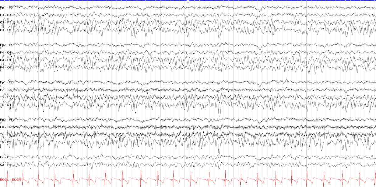These “posterior slow waves of youth” should not be considered pathologic delta activity unless they are unilateral or disrupt the alpha background.